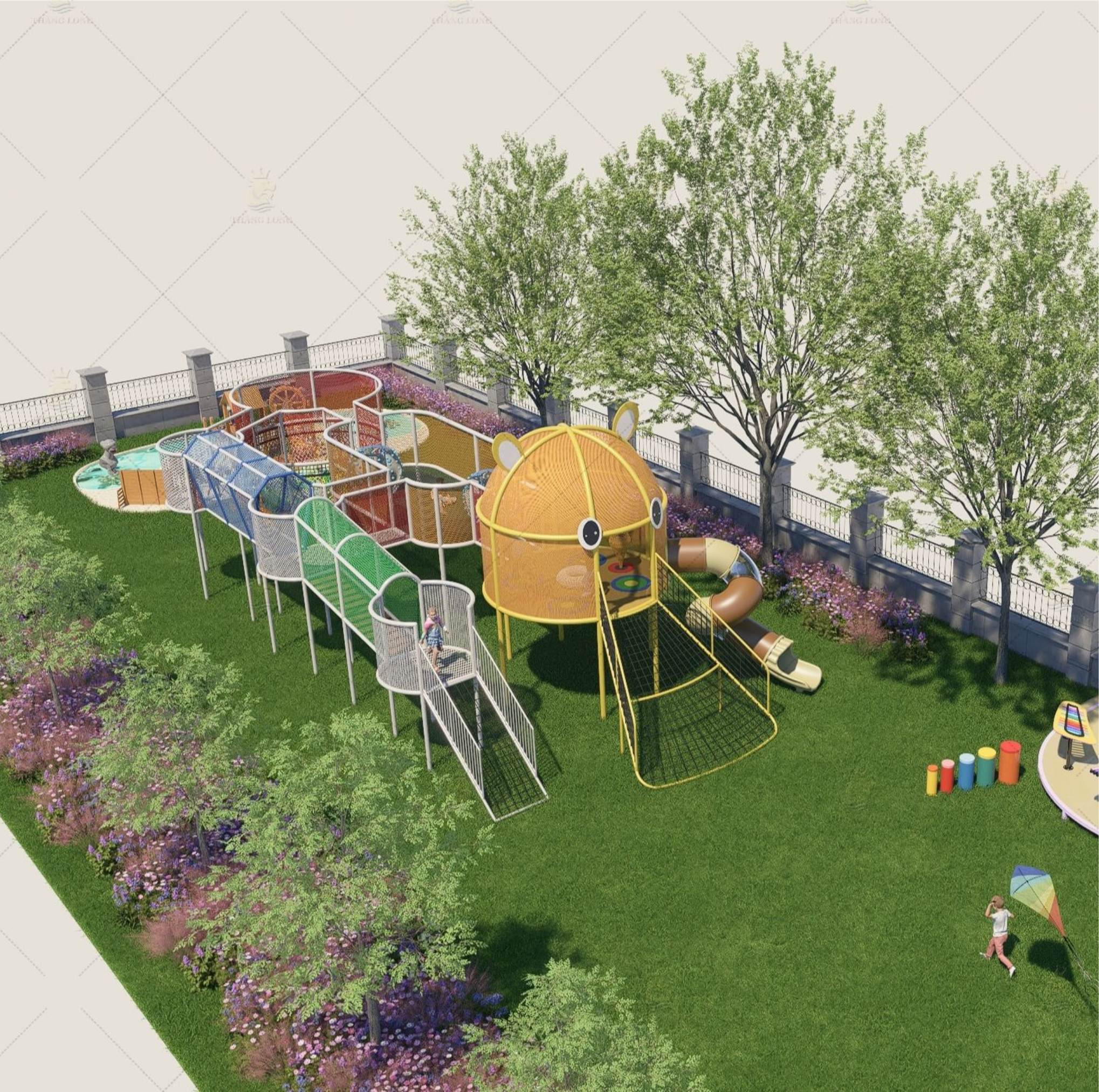 Khu trung tâm (hồ bóng, trampoline) tạo điểm nhấn