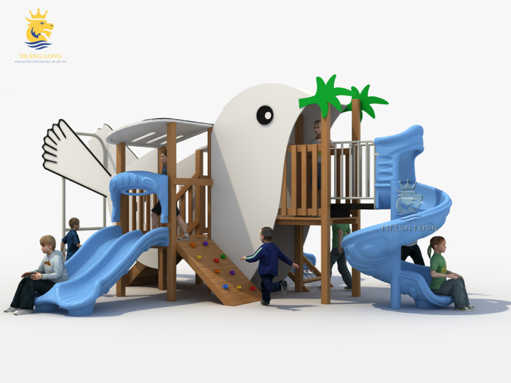Bộ cầu trượt được thiết kế mô phỏng hình dáng các loài động vật ngộ nghĩnh