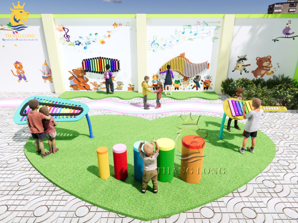 Sân chơi âm nhạc ngoài trời là lựa chọn lý tưởng để trẻ em vừa vui chơi vừa khám phá thế giới âm thanh đầy màu sắc. Với hệ thống nhạc cụ đa dạng phù hợp nhiều độ tuổi, thiết kế khoa học giúp kích thích vận động, cảm thụ âm nhạc và rèn luyện khả năng phối hợp nhóm. Các thiết bị được làm từ chất liệu bền bỉ, chống gỉ sét, chịu được mọi điều kiện thời tiết và đảm bảo an toàn tuyệt đối khi sử dụng ngoài trời.