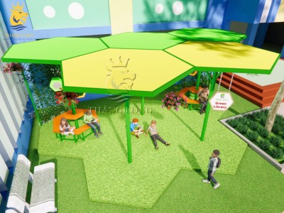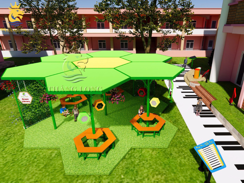 Không chỉ tiện lợi và bền vững, Thư Viện Xanh còn ghi điểm với thiết kế đẹp mắt, hài hòa cùng không gian xanh thiên nhiên trong lành. Mái che, vách ngăn và hệ thống thoát nước thông minh giúp mô hình vận hành tốt trong mọi điều kiện thời tiết. Đây là không gian lý tưởng để học sinh học tập, vui chơi, phát triển tư duy sáng tạo và tăng cường kết nối cộng đồng trong môi trường thân thiện và truyền cảm hứng.